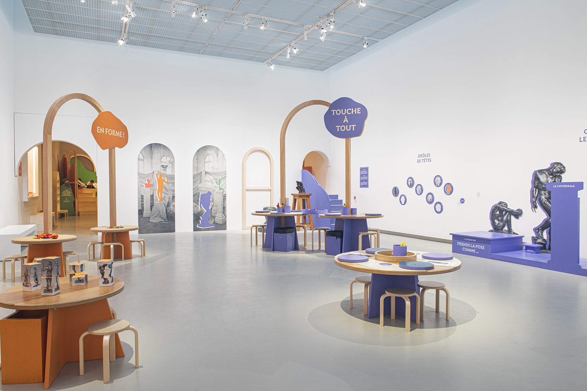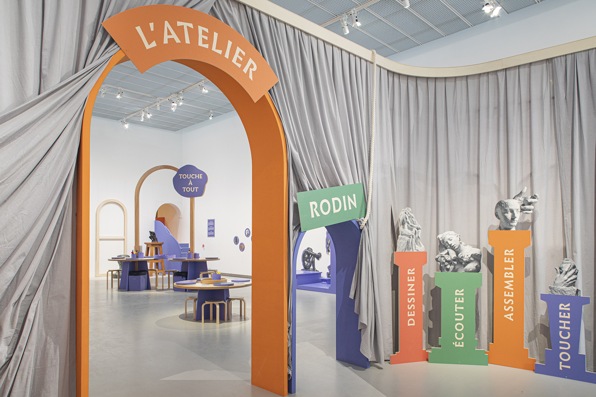 Vaste conçoit la scénographie des ateliers Rodin avec une version augmentée pour cette deuxième édition. C'est un espace de visite libre pour explorer la sculpture et le dessin en famille. La proposition scénographique consiste à inciter le public à découvrir l’art d’Auguste Rodin par le jeu, l’exploration et la mobilisation des sens. Fort de notre démarche environnementale et sociale, le projet a été conçu pour favoriser le réemploi des matières (mobilier, tissus) et les tables en bois récupéré ont été réalisées par un atelier d’insertion professionnelle au métier de menuisier. Ces ateliers sont ouverts de manière récurrente tous les étés.