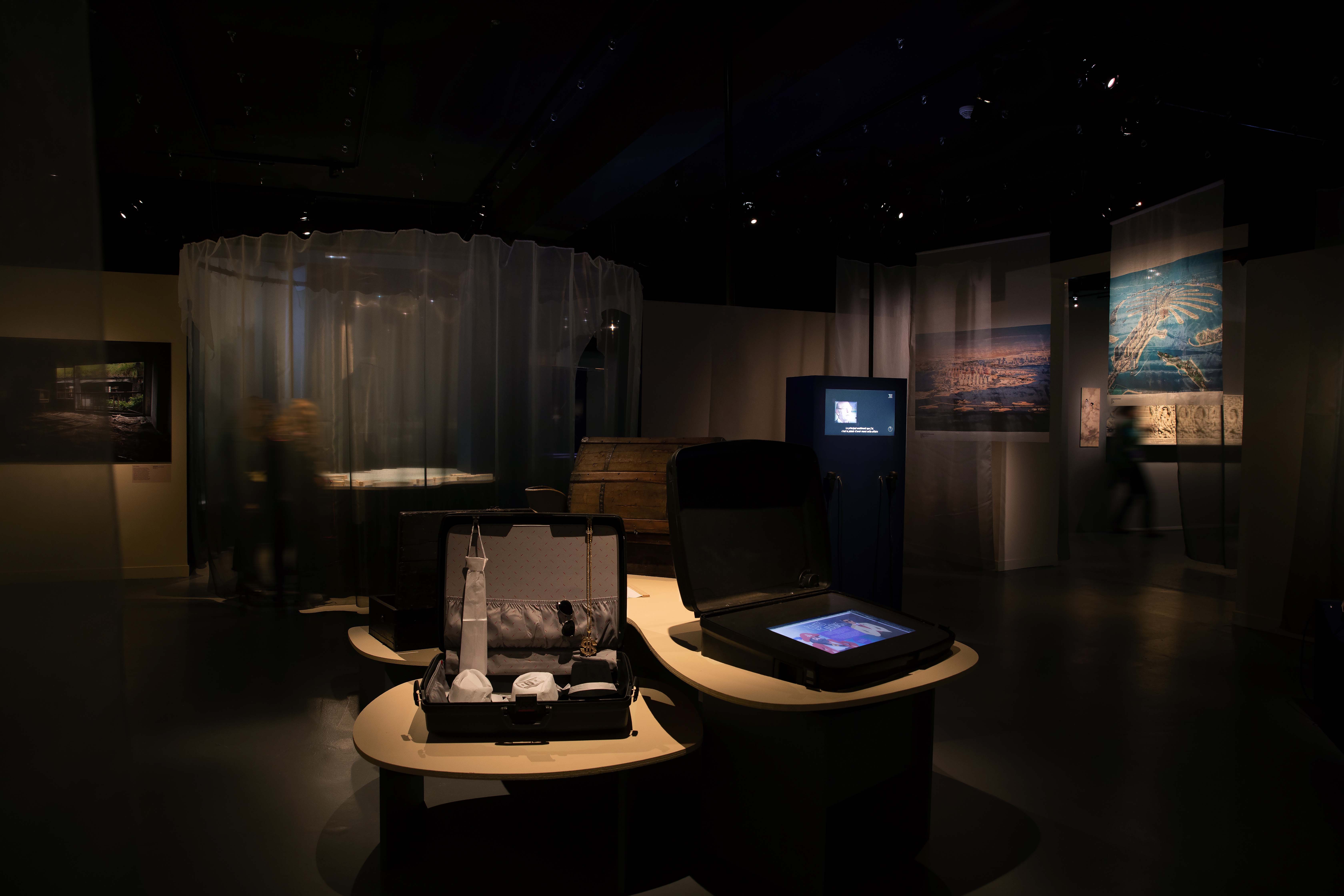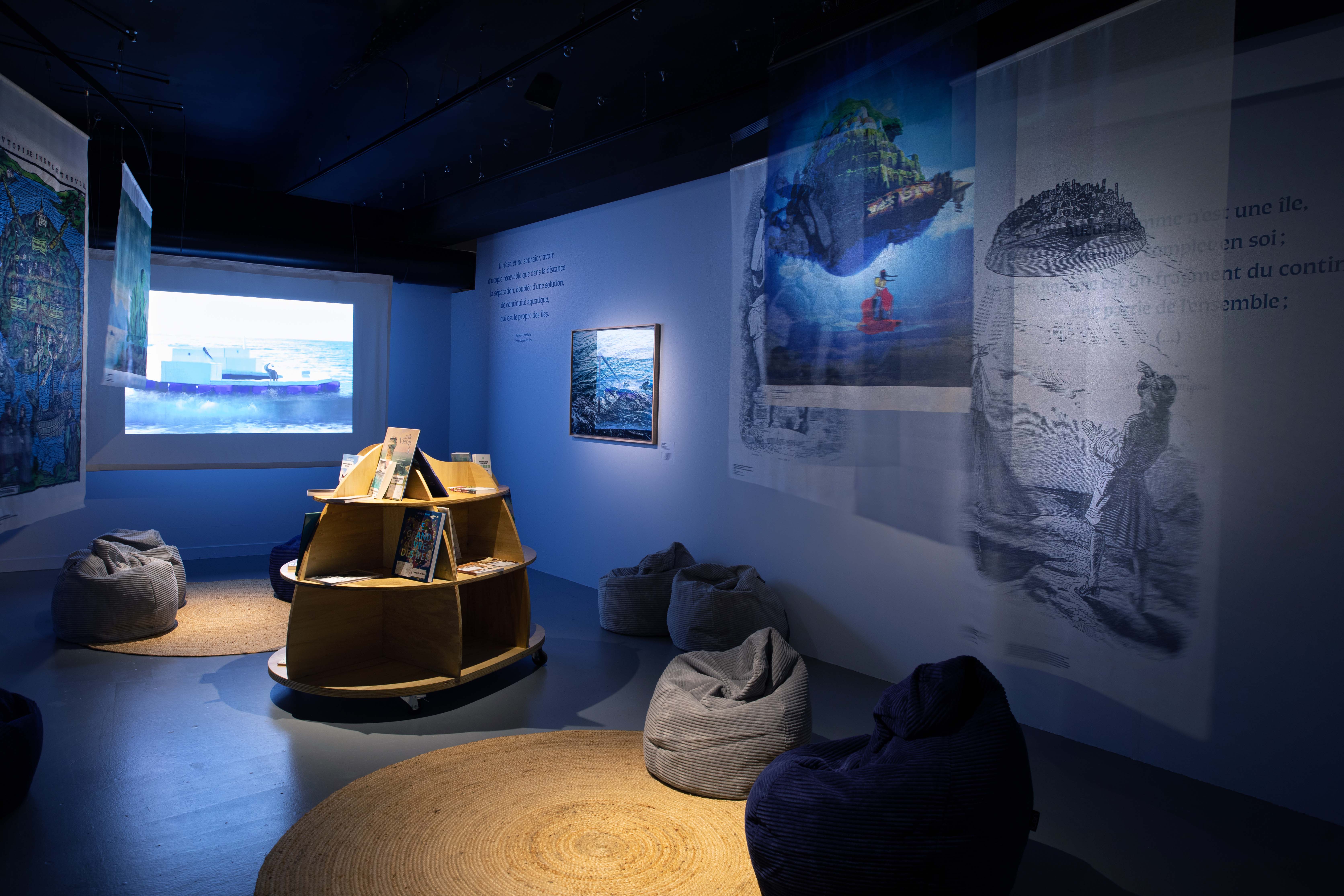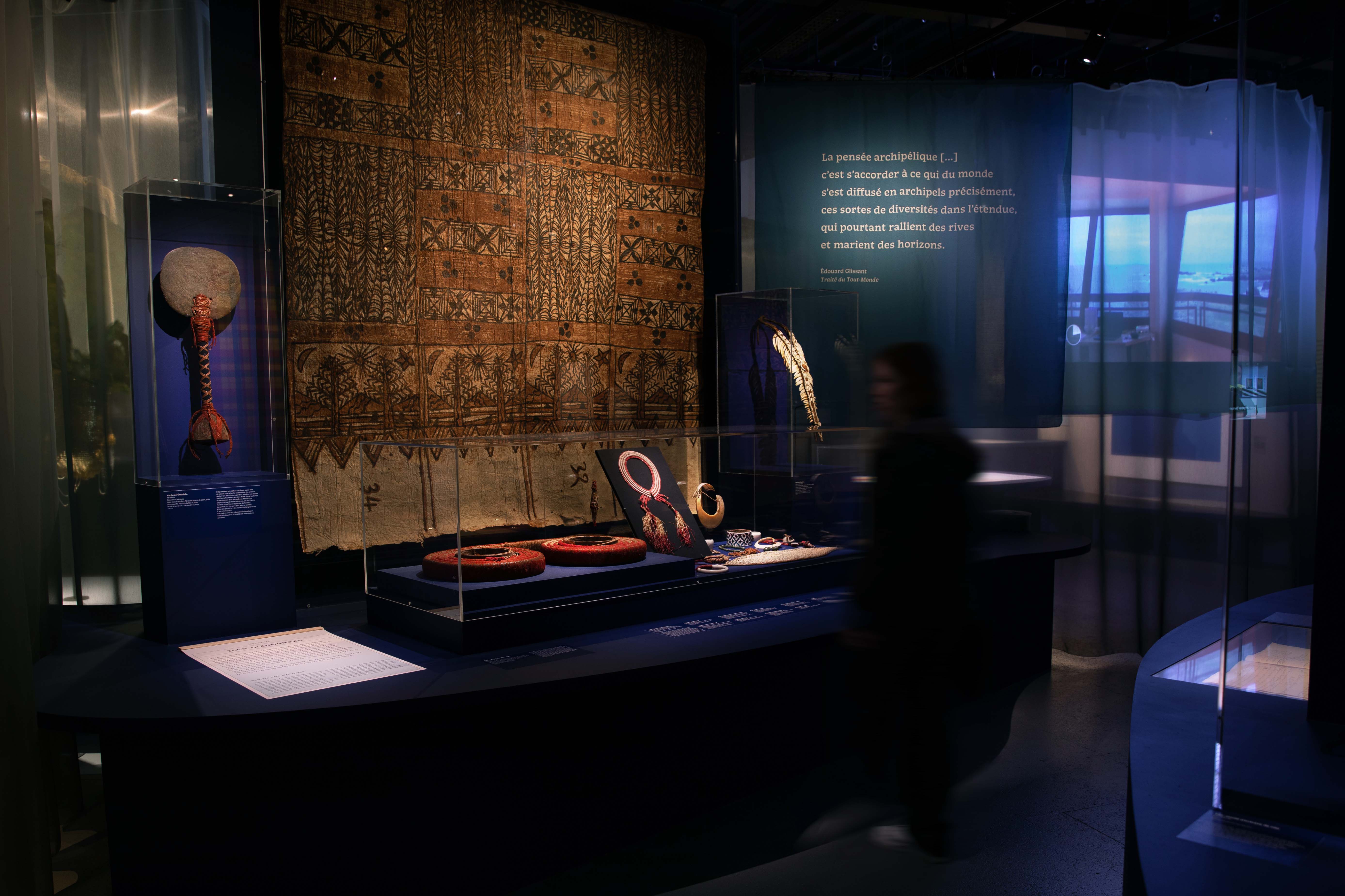 Des dispositifs sensoriels, sons, odeurs, projections, vitrines et mouvements, renforcent l’immersion et invitent le visiteur à une déambulation libre et participative, entre bleu profond et tons ocre des rivages.
