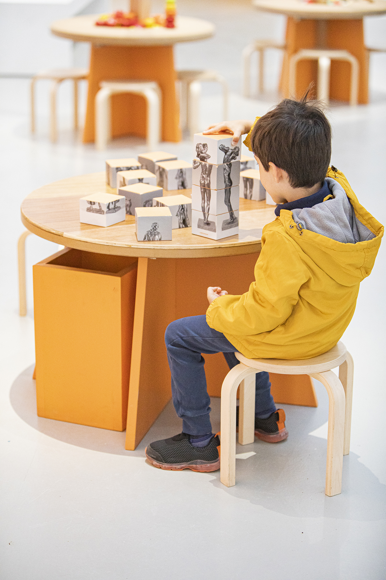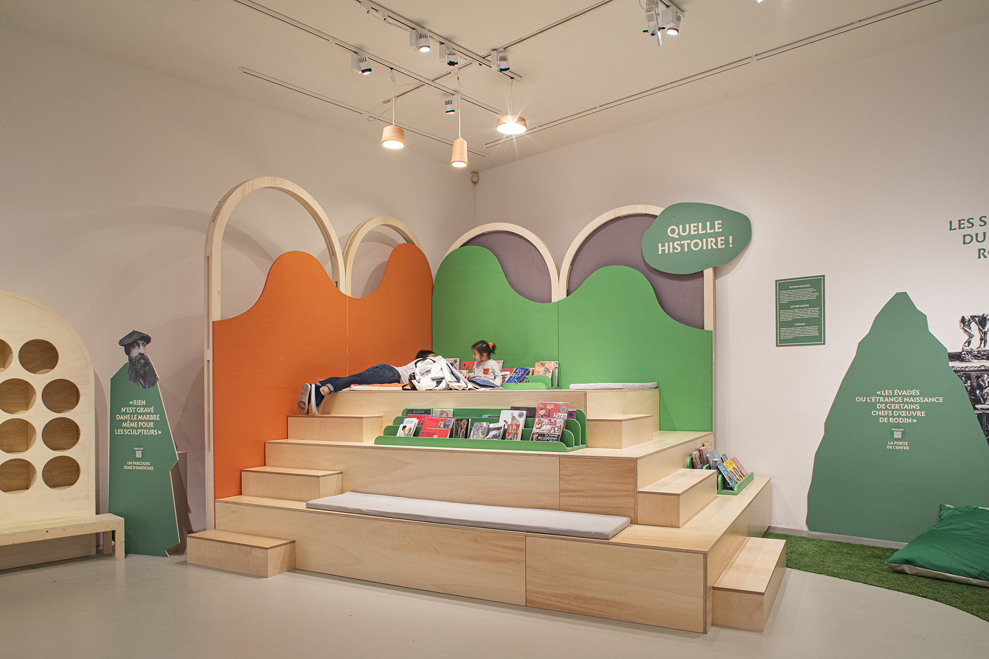 Vaste conçoit la scénographie des ateliers Rodin avec une version augmentée pour cette deuxième édition. C'est un espace de visite libre pour explorer la sculpture et le dessin en famille. La proposition scénographique consiste à inciter le public à découvrir l’art d’Auguste Rodin par le jeu, l’exploration et la mobilisation des sens. Fort de notre démarche environnementale et sociale, le projet a été conçu pour favoriser le réemploi des matières (mobilier, tissus) et les tables en bois récupéré ont été réalisées par un atelier d’insertion professionnelle au métier de menuisier. Ces ateliers sont ouverts de manière récurrente tous les étés.